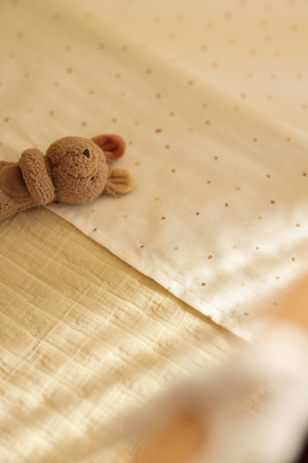La base douce Vanilla s’associe à des tons naturels comme Milky Coffee et Oatmeal, créant un look paisible et chaleureux. Des illustrations ludiques et des détails soignés rendent ce thème idéal pour les tout-petits qui aiment se sentir en sécurité tout en explorant le monde qui les entoure. Que vous choisissiez une couverture, un lange en mousseline ou un kangourou tout doux, ce thème tendre offre à votre mini un cocon chaleureux et réconfortant.