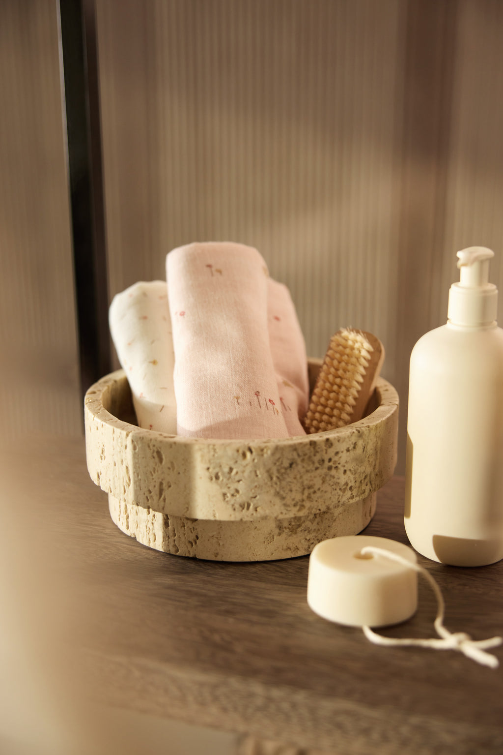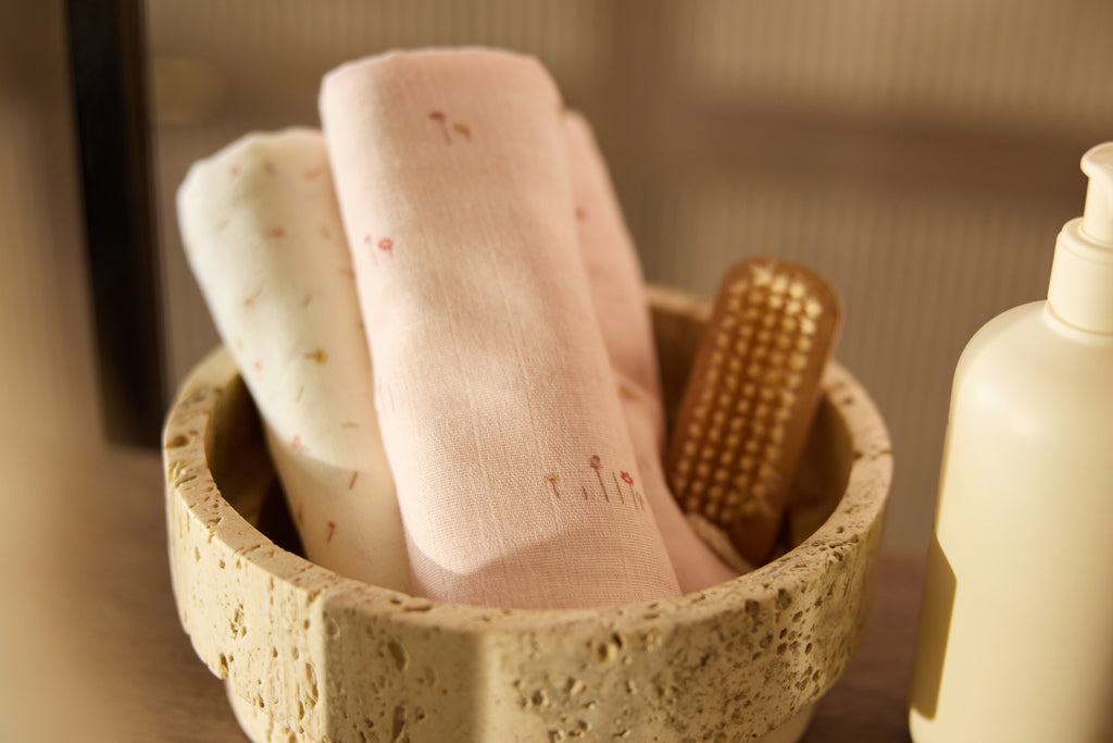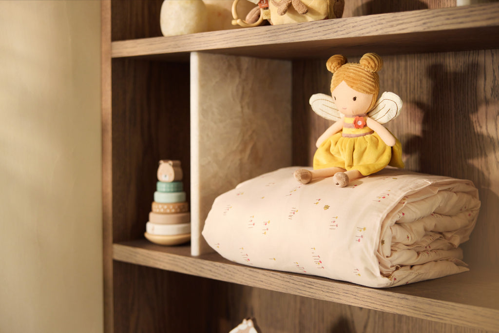 Die zarten Farben Blush und Ivory bilden die Basis dieses bezaubernden Themas und werden durch warme Akzente wie Light Terra, Honey und Milky Coffee ergänzt. So entsteht ein ruhiger und zugleich verspielter Look, der sich wunderbar mit anderen Jollein-Favoriten kombinieren lässt.