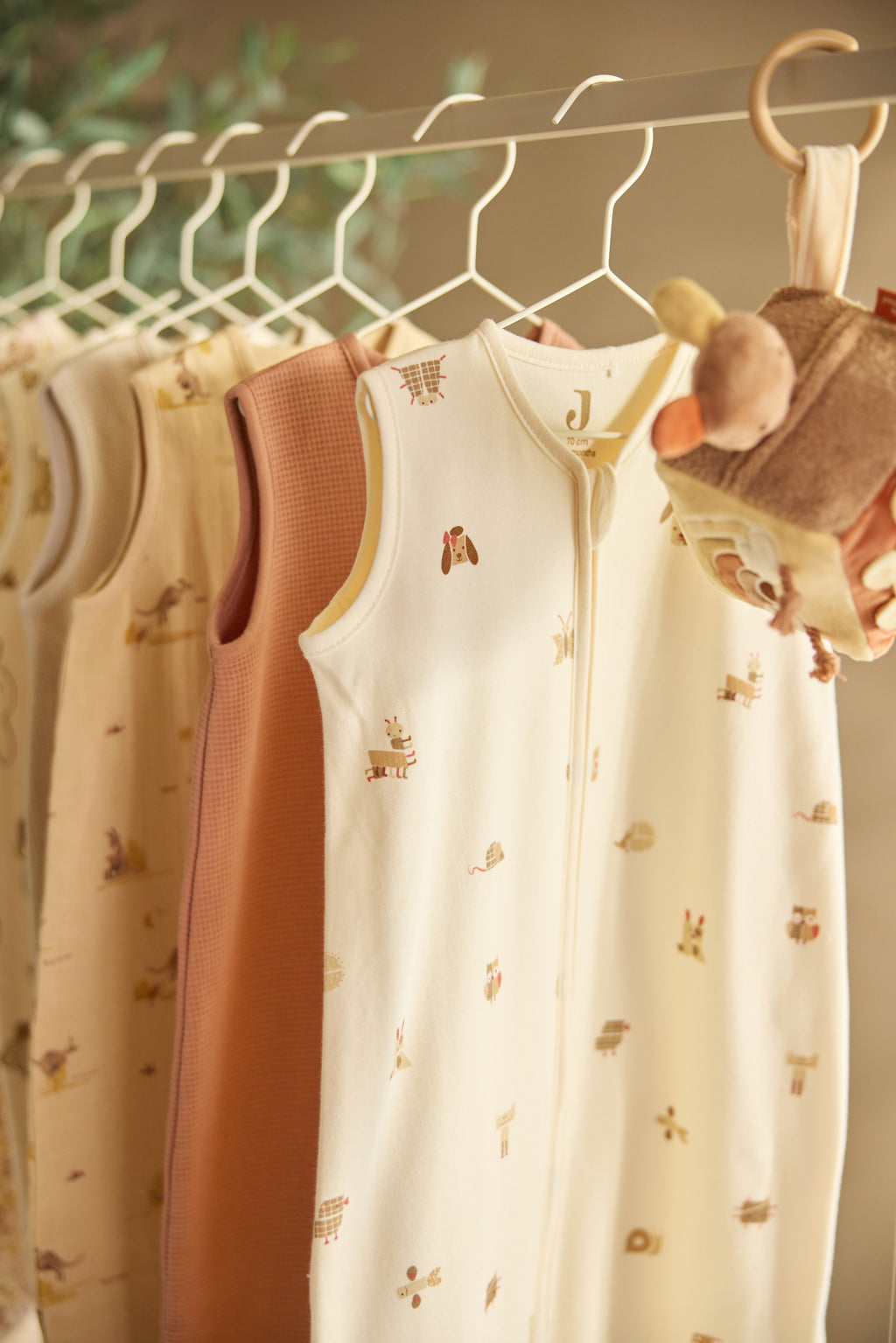 Dieser bequeme Babyschlafsack hat abnehmbare Ärmel. So wechselst du von einem TOG-Wert von 3,0 für die kalten Wintertage zu einem TOG-Wert von 2,0 für die kühlen Nächte im Frühling und Herbst.