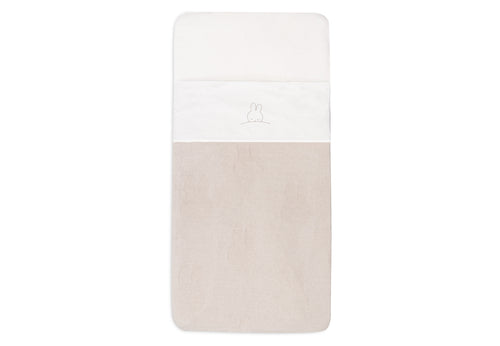 Ein Laken ist der perfekte Schutz für die Decke. Wenn dein Kleines zum Beispiel spuckt, muss die Decke nicht sofort in die Wäsche. Das Laken sorgt auch dafür, dass das Bett sicher und straff gemacht werden kann. Das Laken hat die Farbe Ivory mit einer süßen schlafenden Miffy auf der Oberseite. Den Rand kannst du zum Schutz um die Decke falten, und das Ganze sieht auch wunderschön aus. Das Miffy-Laken ist für das Babybett und das Kinderbett erhältlich.