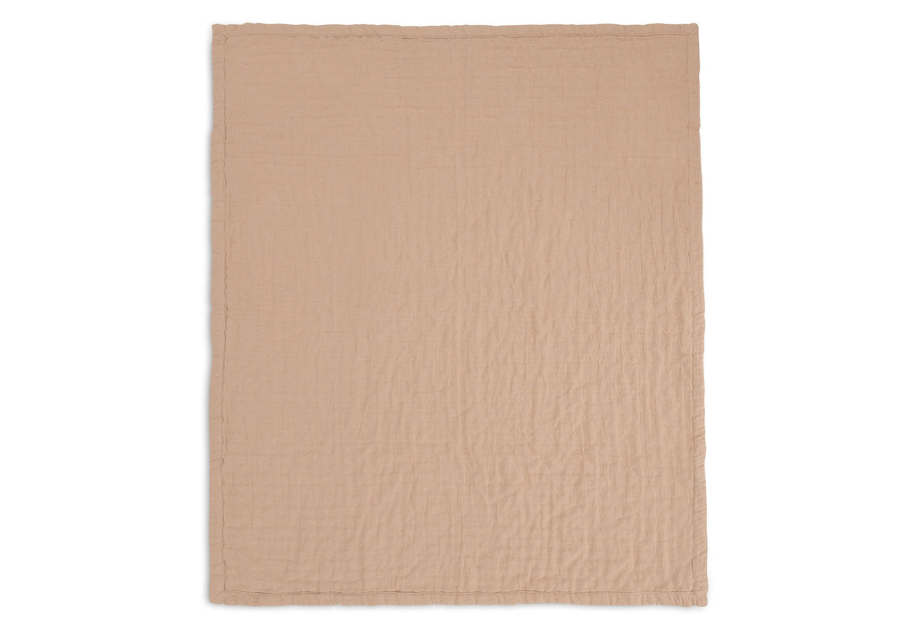 Both cot and bed blankets are available in different fabrics and textures. Jollein has baby blankets made of 100% cotton, a blend of cotton and acrylic, and knitted blankets with a teddy knitting pattern (60% cotton and 40% acrylic). Each fabric and weave provides a different thickness and insulation value or TOG value.