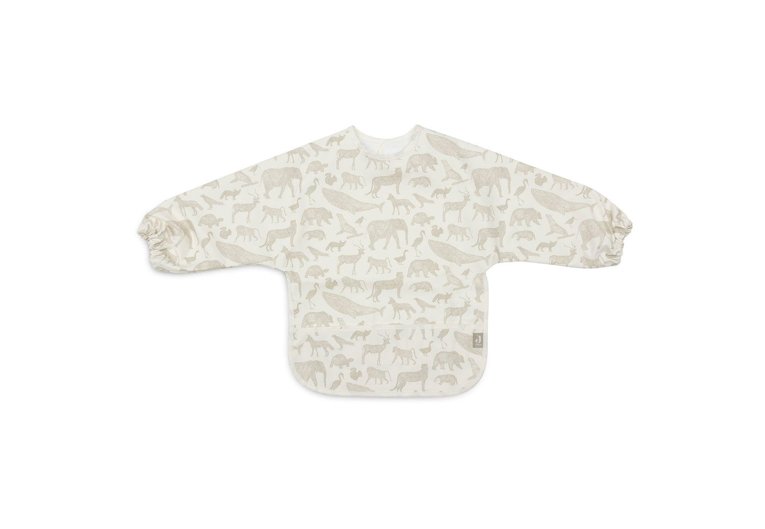 Go on an adventure with this cute bib with Animals print. These waterproof bibs with sleeves can even handle the worst messes your adventurous baby or toddler makes. Easily attach the bib around your little one's neck with velcro, and remove the bib after use. Available in Nougat and Olive Green.