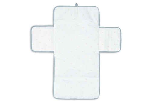 Our trendy changing mat in muslin is the perfect companion for busy parents On The Go! This mat has handy compartments for diapers, so you can have everything to hand while changing. You close the mat with a bow! Available in several pretty colours to perfectly match your baby's room! The outside is made of soft hydrophilic, and the removable inside is decorated with the cute Harvest print. Change your baby comfortably and in style wherever you are!