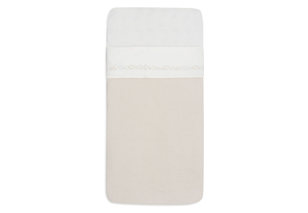 How special is it to go on an adventure together? In Elephant Tales, a big elephant takes its little one along, safe under its large ears and always close by. The sweet illustrations, with delicate lines and soft tones like Sea Green, Biscuit, and Milky Coffee on an Oatmeal background, give the nursery a warm and playful feel. Beautifully combined with the Milky Coffee Box Knit, Sea Green Rib blankets, and Cosy Knit Sea Green. A loving theme that grows along with your most beautiful moments together.