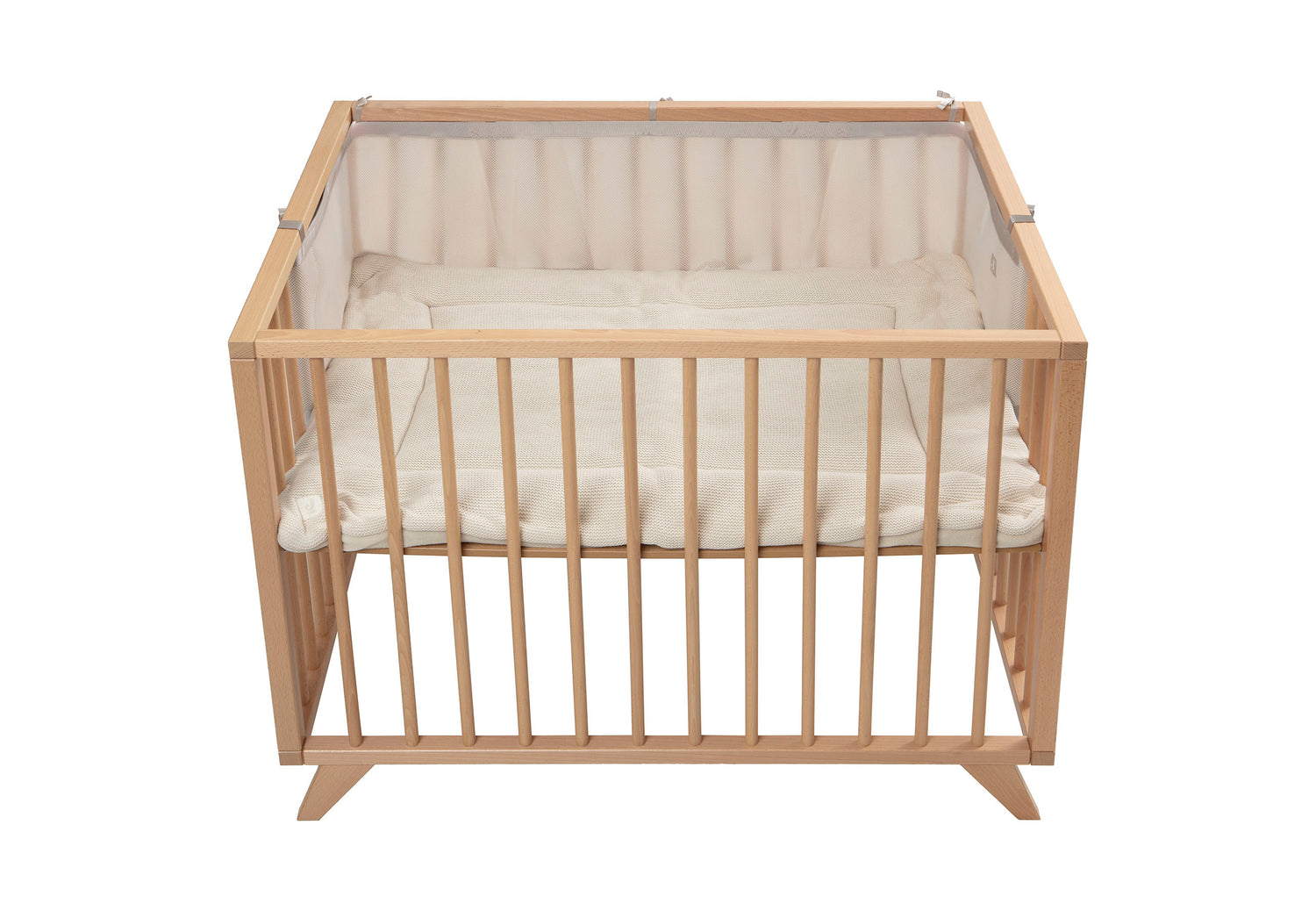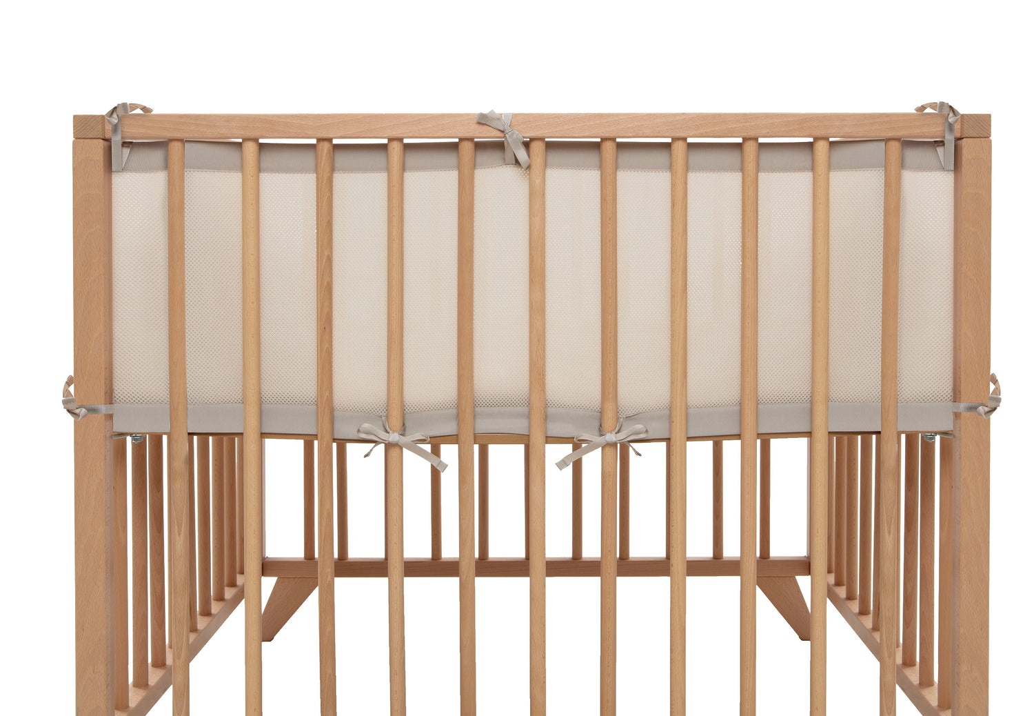 Met deze boxbumper maak je van de box een extra comfortabele plek voor je kindje. De zachte bumper beschermt het hoofdje en de armpjes tegen stoten. De ademende mesh-stof zorgt ervoor dat de lucht er goed doorheen kan blijven circuleren. Je zet hem eenvoudig vast met lintjes en de buitenkanten span je strak om de spijlen met klittenband, zodat alles stevig blijft zitten.