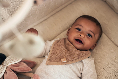 Ce bandana pratique est l'accessoire de base indispensable! Il permet d'éviter les taches de salive sur les vêtements ou sur la tenue de votre enfant. Le bandana est fabriqué en éponge douce et confortable; les boutons-pression à l'arrière permettent d'ajuster facilement la taille. Disponible en lot de 2 dans les couleurs Sea Green ou Wild Rose. Laquelle choisirez-vous ?