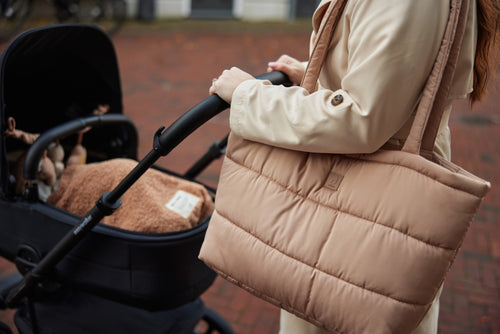 Le puffy bag parfait pour les mamans ! Ce sac est idéal lorsque vous sortez avec votre tout-petit. Bien sûr, vous pouvez aussi utiliser le sac pour vous-même, pour le sport ou comme mallette. Le sac est fabriqué en 100% polyester recyclé. À l'intérieur, il y a un joli imprimé à pois. Vous disposez également de 2 poches de rangement pratiques à l'intérieur et standard, un matelas à langer est inclus. Le sac se ferme avec un bouton et il y a une fermeture éclair dans la poche intérieure. Il est doté de poignées extra-longues pour que vous puissiez le porter non seulement à l'épaule, mais aussi en bandoulière ou autour du landau. Couleur Disponible dans les couleurs Biscuit, Noir et Olive Green Matière L'extérieur est fait de 100% polyester recyclé. Le rembourrage du sac est composé de 100% polyester puffy bag recyclé. Dimensions Le sac mesure 40 x 35 x 16 cm. La longueur totale des poignées est de 85 cm.