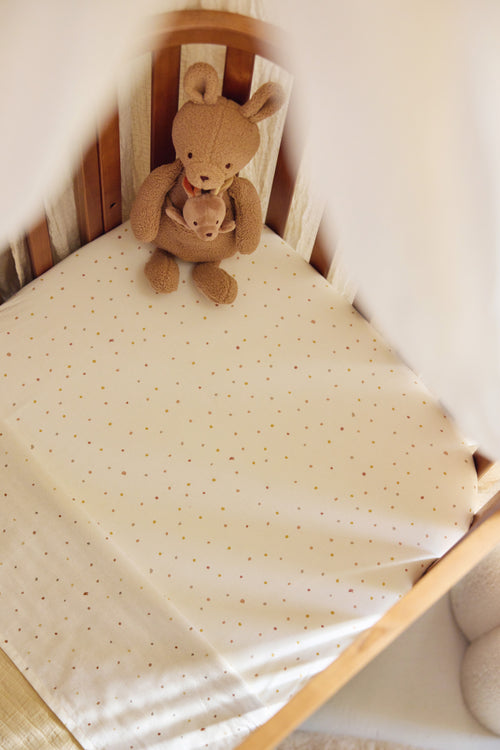 Ce drap-housse tout doux assure à votre bébé un confort optimal pendant son sommeil. En jersey souple et respirant, il épouse parfaitement le matelas et reste bien en place grâce à son élastique tout autour — même lorsque votre tout-petit bouge pendant la nuit. Ainsi, le lit reste bien lisse et vous n’avez rien à ajuster entre-temps. Son imprimé ludique apporte une touche joyeuse à la chambre, tout en conservant un aspect doux et harmonieux. Vous préférez un style plus sobre ? Découvrez aussi les draps-housses unis de Jollein.