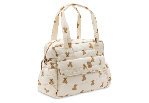 Ce sac tendance du thème Mini Teddy Bear allie un look adorable à une grande fonctionnalité. Le sac est spacieux et offre suffisamment de place pour tous les essentiels dont vous avez besoin en déplacement. À l’avant, des poches pratiques avec fermeture Velcro incluent un Tapis à Langer nomade assorti toujours à portée de main. Grâce à sa finition bionique, le sac est déperlant, idéal pour tous les temps. Vous pouvez le porter facilement à la main ou avec la bandoulière réglable. Astuce : associez le sac à nos crochets pour poussette pour encore plus de praticité lors des promenades.