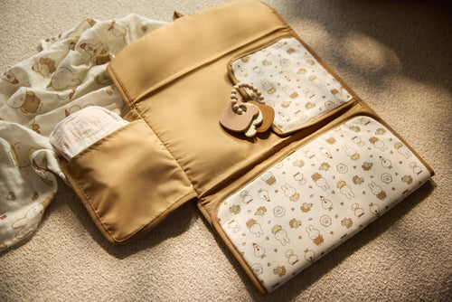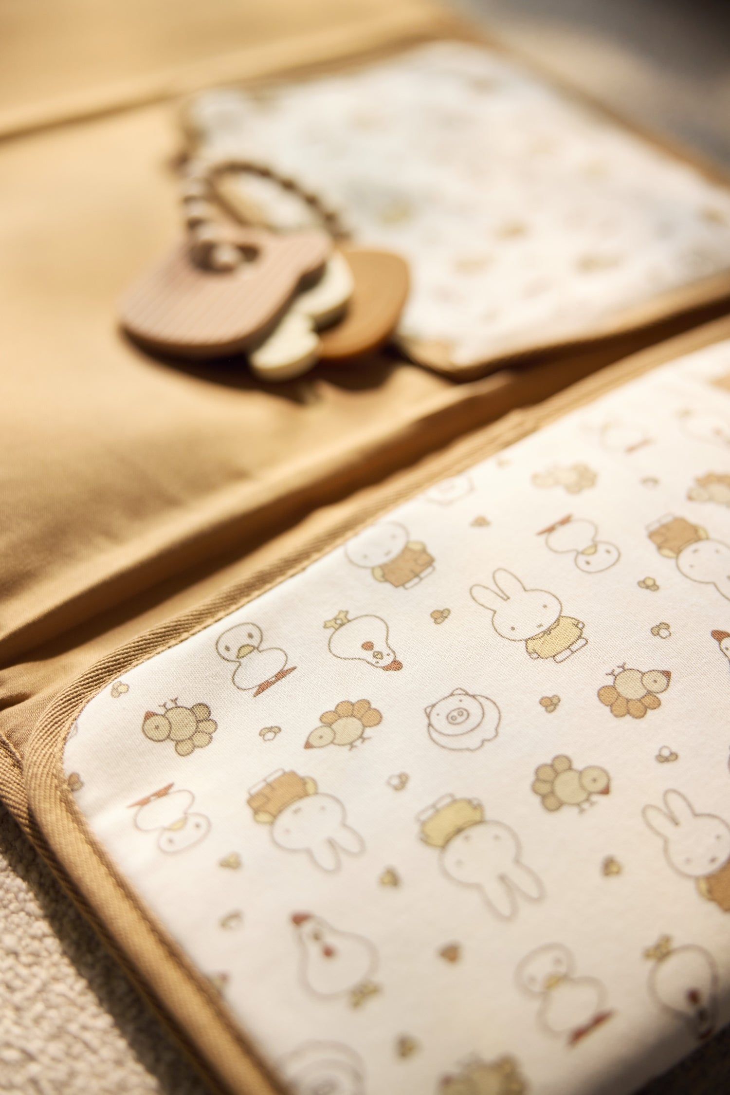 Notre tapis à langer doux est un indispensable pour vos déplacements ! L’extérieur présente un motif all-over de la Miffy Family Farm. L’intérieur, facile à nettoyer d’un simple coup de chiffon, offre tout le confort dont votre bébé a besoin lors du change.. Des poches pratiques permettent de ranger les accessoires de bébé et un petit ruban assure une fermeture facile. Pratique et adorable en déplacement !
