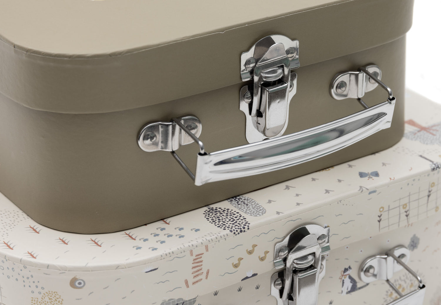 Cet ensemble de petites valises dans le style Tiny Park est parfait pour votre enfant ! Les valisettes ont des imprimés assortis aux couleurs du thème Tiny Park, avec des poignées argentées pour un look ludique. L’intérieur présente un joli motif à carreaux et la mention « belongs to » pour que votre mini puisse les emporter partout. Idéal pour ranger de petits objets ou comme décoration dans la chambre de bébé !